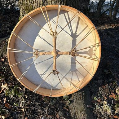 50cm. große, gefärbte Hirsch Trommel auf leichterem Weide-Rahmen mit Kunst-Hanfseil geschnürt… Mit einem Willkommens Ritual begrüßt & Geräuchert… dazu gibts den passenden persönlichen Filzschläger.