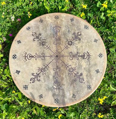 Meine Trommeln bestehen aus Naturprodukten (Einheimische Holzrahmen, Hirsch, Ziegen, Bison, Rentier, Wasserbüffel & Pferderohhäuten"und einer individuell gestalteten Schnürung aus Haut, Hanfseil oder auch unshanf/PPM Seil auf der Rückseite